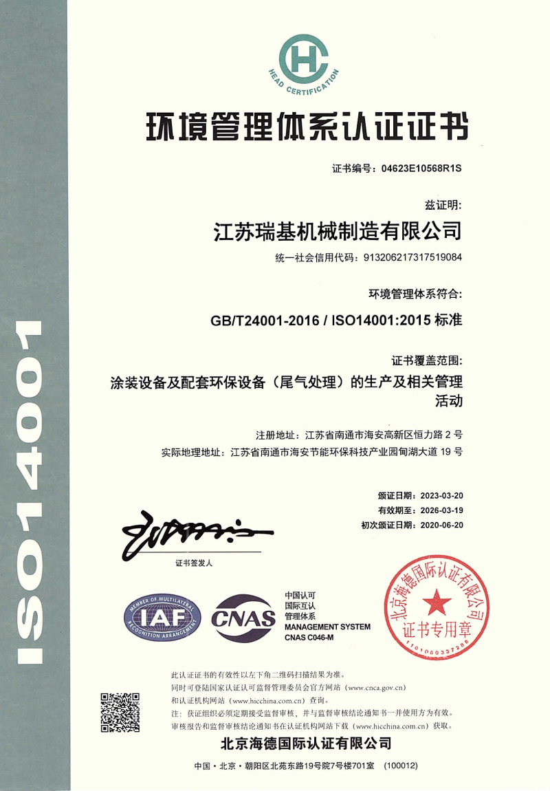 環境管理體系認證證書